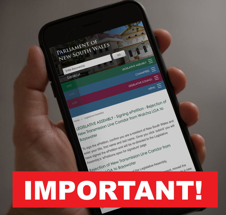 The landholders under the newly-selected corridor have launched an official NSW Parliament E-petition.